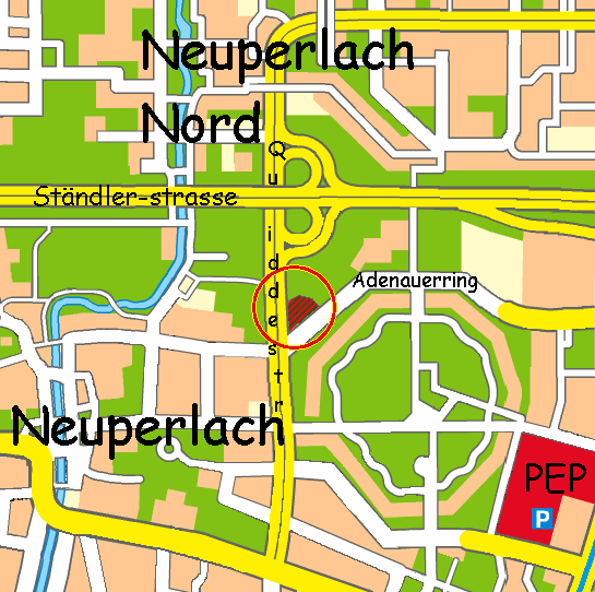 Anfahrt über Ständlerstrasse => Ausfahrt Quiddestrasse => links abbiegen bis zur nächsten Ampel, Kreuzung Adenauerring / Quiddestrasse => links auf dem Eckgrundstück befindet sich das Dojo: Quiddestrasse 121 / 81737 München |